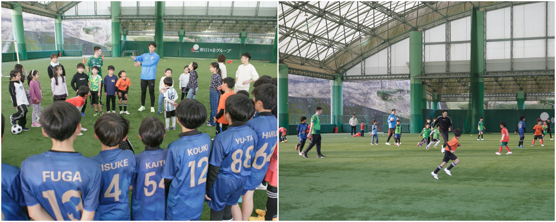 午後から嬉野市に集合し、現役Jリーガーの圍謙太朗選手(京都サンガF.C.)の直接指導の下、朝日I&Rドームで、LCAの子どもたちと嬉野市の子どもたちでサッカーを中心としたアクティビティを行いました。プロの動きを間近に見ながら、初対面の子どもたちも意気投合し、活気のある最高の交流の時間となりました。長時間移動してきたLCAの子どもたちも思いっきり体を動かして嬉野の空気を胸いっぱいに吸い込みました。