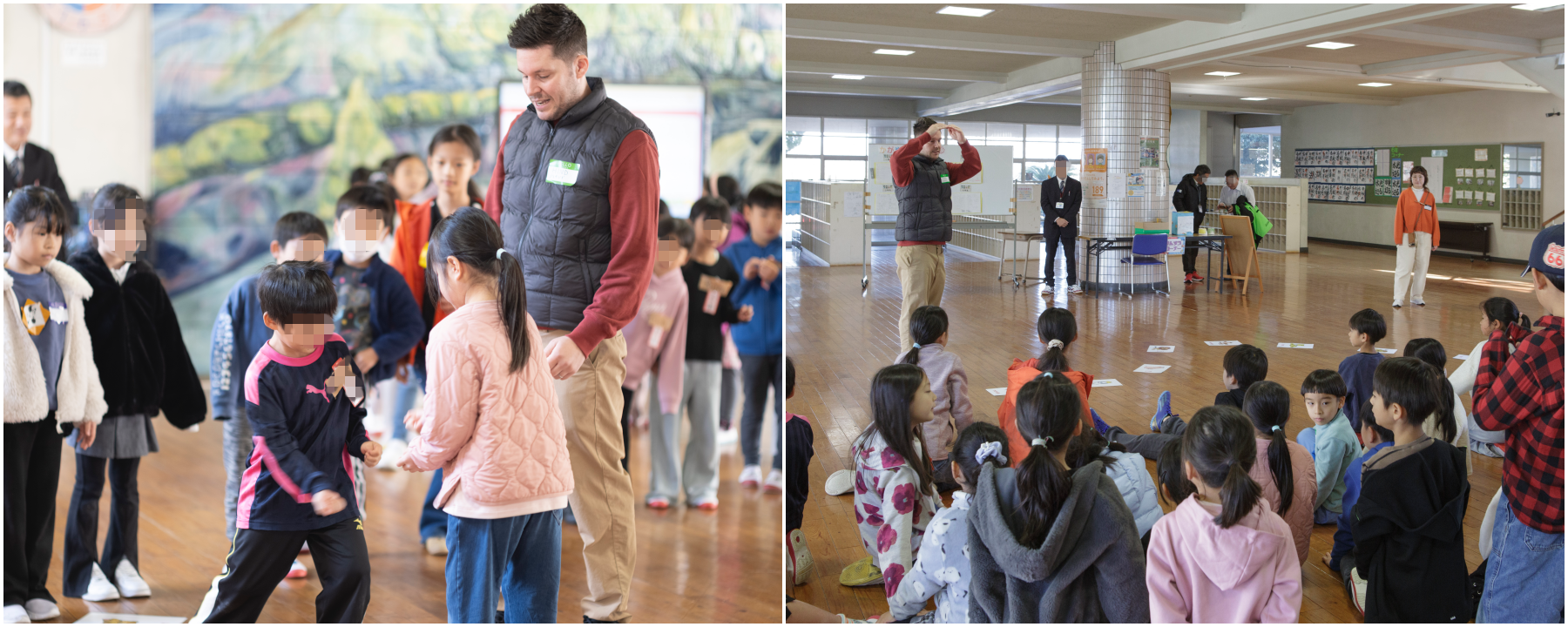 午前中は、轟小学校の子どもたちと一緒に10種類のブースに分かれて昔遊びをし、子どもたち同士の交流をしました。轟・大野原地区の地域コミュニティの皆様の多大なるご協力により本当にたくさんのアクティビティの場を用意していただき、LCAの子どもと轟小の子どもが混合になったチームでまわりました。本当に楽しい時間となりました。その後、LCAのネイティブ教員による英語の授業も一緒に行いました。